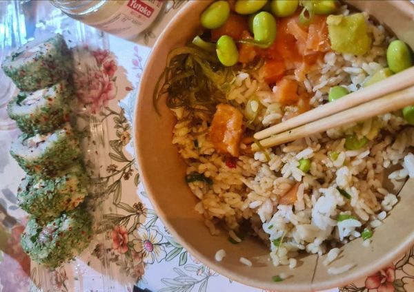 Ілона подивилася на замовлення: вона побачила лише найменування, суму, час, та адресу замовлення. Звичайне доставлення японської кухні.