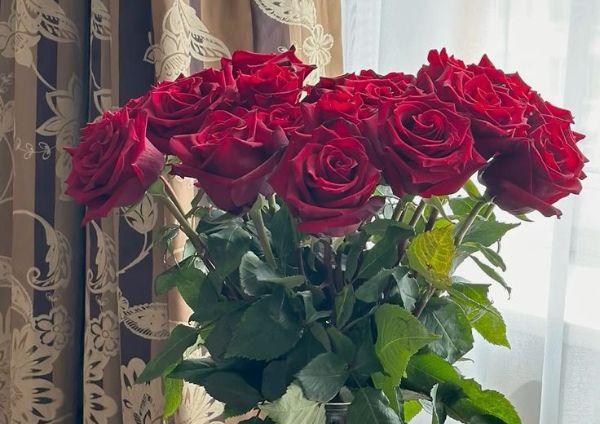 Раптом перед ними виріс молодик з величезним букетом троянд.