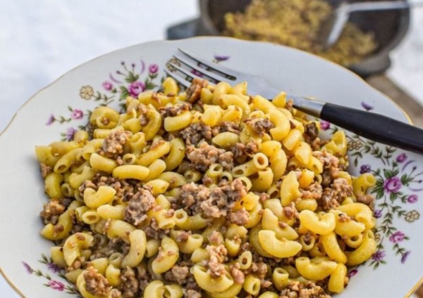 Перед ним стояла тарілка з тими самими макаронами по-флотськи: з м’ясом, з морквою, чорним перцем. А як вони пахли! У животі зрадливо забурчало, і Славко зголоднілим звірком накинувся на частування.