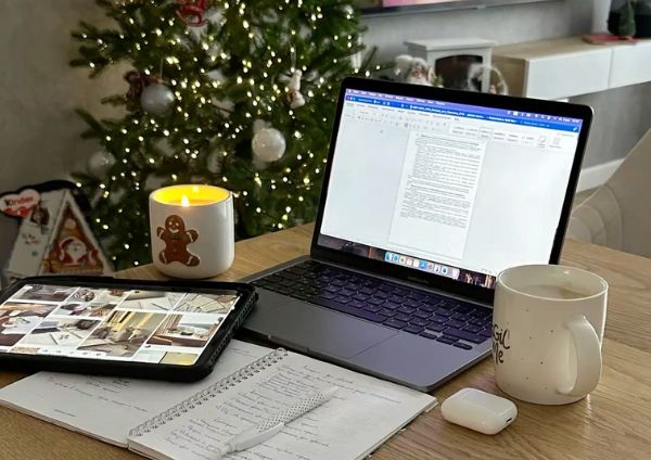 Фотографія: свекруха сидить із чаєм біля нового ноутбука, на екрані – заставка з онуком.